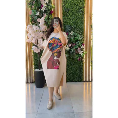 LONG LOOSE PRINTED TOP TEE